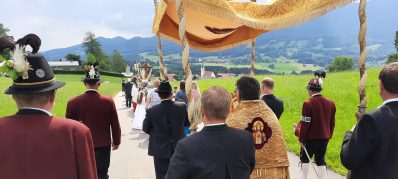 Das „Allerheiligste“ wurde gut behütet und begleitet von den Samerberger Gebirgsschützen und den Erstkommunionkindern.
