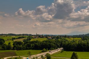 Blick von der Kirchturmspitze in Frasdorf nach Umrathshausen