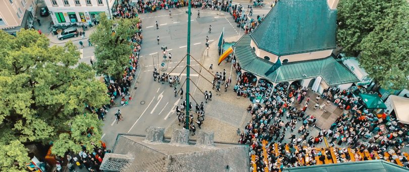 Foto: Prien Marketing GmbH: Luftaufnahmen vom Maibaumaufstellen – PriMa/Wingmen Media