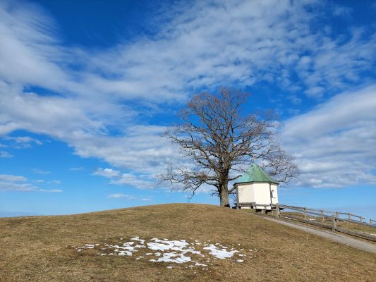 Das Hochplateau Samerberg hat viele Punkte, die es zu erwandern gilt und die sich lohnen wegen ihres Ausblickes. Ein ganz besonderer Ort ist Obereck mit Kapelle und Eiche. Von dort sind herrliche Blicke ins Rosenheimer Land, zum Chiemsee und auch in die nahe Bergwelt möglich – wie diese aktuellen Bilder zeigen.