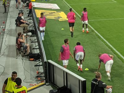 Die Hausherren überzeugten in einer sehenswerten Begegnung gegen eine starke Wiener Austria. Die “Violetten” aus Wien begannen zwar stürmisch und hatten schon in der 1.Minute nach einem Fehlpass von Nicolas Capaldo die Chance zum Führungstor, trafen aber nur den Pfosten. Dann übernahmen die Bullen das Kommando, mussten aber aufpassen, denn die Violetten konterten mehrmals brandgefährlich. Die besseren Chancen erspielten sich aber die Soizburger, die trotz drückender Hitze immer besser in Fahrt kamen. Fernando scheiterte zweimal nur knapp und Benjamin Šeško hatte Pech mit einem Stangenschuss, traf dann aber noch vor der Halbzeitpause zum 1:0. (37.).