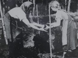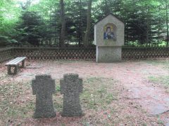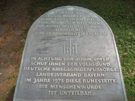 Bevor wir  im  Bräustüberl in Schönram mit bayerischer Küche und  Schönramer Bier vom Fass  einkehren, besuchen wir noch den gleich in der Nähe des Parkplatzes gelegenen Ukrainer Friedhof, den dunklen Teil der Geschichte des Schönramer Filzes. In der stillen, berührenden Gedenkstätte.  ruhen 54 Ukrainer und 1 Grieche, wegen miserabler Lebens- und Arbeitsumstände an Tuberkulose erkrankte Zwangsarbeiter im Zweiten Weltkrieg, die in den leerstehenden Baracken des ehemaligen Reichsarbeitsdienstlagers isoliert wurden und starben.