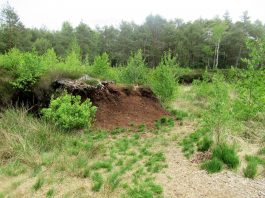 Wir beginnen unsere Moorwanderung am Parkplatz  an der Straße Schönram – Laufen. Der Weg führt  teilweise auf der Trasse der ehemaligen Torfeisenbahn  vorbei an ehemaligen Handtorfstichen und an  freigestellten Latschenflächen und Kiefernwäldern zum ursprünglich unbewaldeten 500 Hektar großen Schönramer Filz. Dann gehts durch Moorwälder auf einen Bohlenweg ins Hochmoor. Vorbei auf einer Forststraße am “Großen Moorsee” und einem noch aktiven Handtorfstich, der einen guten Eindruck von der mühevollen Arbeit althergebrachter Torfgewinnung vermittelt, erreichen wir wieder den Ausgangspunkt.