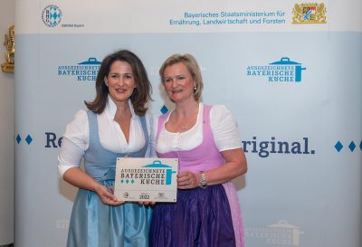 26 bayerische Gastwirte können ab sofort offiziell mit ihrer „Ausgezeichneten Bayerischen Küche“ werben. Die Urkunden zum Qualitätssiegel mit der weiß-blauen Raute wurden ihnen am Montag bei einem Festakt in München von Landwirtschaftsministerin Michaela Kaniber und der Präsidentin des Bayerischen Hotel- und Gaststättenverbands, Angela Inselkammer, überreicht. „Auf dieses Zeichen können Sie stolz sein, denn es belegt Ihr Können und Ihre Leidenschaft als Gastronomen. Sie alle erfüllen strenge Kriterien und haben bewiesen, dass Ihnen die bayerische Küchenkultur am Herzen liegt“, sagte Kaniber. Darüber hinaus erhielten drei Gastronomen Urkunden für ihre „Ausgezeichnete Bierkultur“. Damit wird ihr besonderes Engagement zum Erhalt des kulinarischen Erbes des Bierlands Bayern herausgestellt.