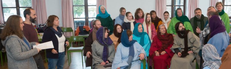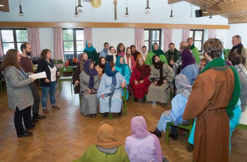 Bei den Proben stellte sich heraus, dass die Hohenpriester, ein Sadduzäer und ein Religionsführer eine spezielle Ausstattung brauchen. Da hatte Gisa eine gute Idee. Sie nahm mit dem Passionsspiel-Verein Thiersee, im benachbarten Tirol Verbindung auf und fuhr mit den Darstellern einfach zum Passionsspielhaus. Der Vorstand des dortigen Vereins, Kröll, nahm die bayerischen Bittsteller des Heimat- und Geschichtsvereins freundlich auf und erfüllte den Aschauern ihre Wünsche aus seinem reichhaltigen Fundus. Schließlich packte die Abordnung noch 60 Paar Sandalen für alle Mitspieler ein, sonst hätten diese in der doch recht kühlen Aschauer Pfarrkirche barfuß spielen müssen. Jetzt gibt es in Sachen Kleidung und Schuhwerk keine Probleme mehr für die 14 geplanten Auferstehungsspiele (von 30.03. bis 12.04. „Vom Leben Jesu“, Ostermontag bis 05.05. „Die Auferstehung Jesu“).