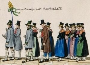 Ausgangspunkt sind die frühesten Kleidungsabbildungen auf den Mirakeltafeln der Großgmainer Marienkirche. Ab der zweiten Hälfte des 16. Jh. kam die spanische Hoftracht in Mode, welche die Tracht im Reichenhaller Tal bis nach 1700 dominierte. Seit dem späten 17. Jh. galt die französische Hofmode aus Versailles als Vorbild für Europa. In vereinfachter Form gelangte diese Tracht nach Reichenhall. Nach der Französischen Revolution entfielen die Kleidervorschriften für die unterschiedlichen Stände. Die Bevölkerung orientierte sich zunehmend an der internationalen Mode.