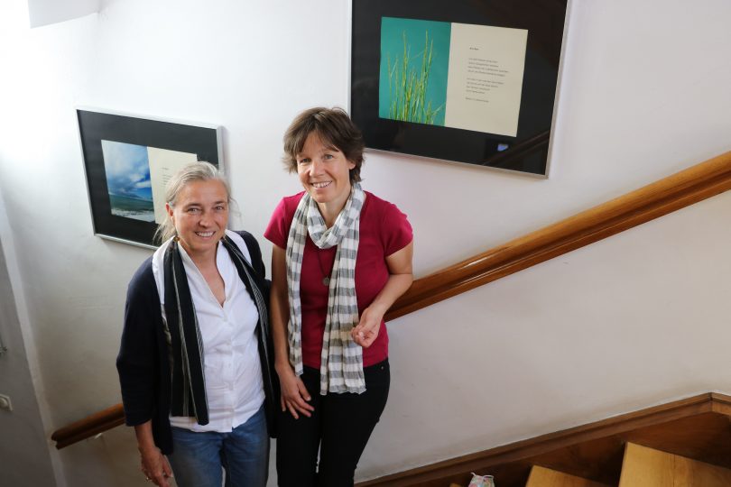 Bildunterschrift: (v.l.n.r.) Fotos von Elisabeth Gröger und Texte von Birgit Graf laden zum Verweilen und Entdecken im Haus des Gastes ein.