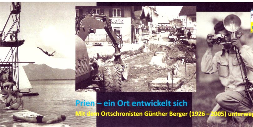 Günther Berger, der auch als „rasender Reporter” bekannt war, und der im vergangenen Dezember seinen 95.Geburtstag hätte feiern können, hat seit 1949 die Entwicklung und die Ereignisse seiner zweiten Heimat in Bildern dokumentiert. Daneben hat er mit seiner Sammlung von historischen Aufnahmen wie kein Zweiter die Geschichte der Gemeinde Prien in Fotografien dokumentiert. Unsere Fotoausstellung „Prien – Ein Ort entwickelt sich – Auf Spurensuche mit dem Ortschronisten Günther Berger”, wird für viele ein Déjà-vu sein. Viele werden sich an längst Vergangenes im Ortsbild, viele sich auch an Menschen, die schon lange nicht mehr unter uns weilen, erinnern. Und gleichzeitig kann die Ausstellung auch Anregungen geben für die zukünftige Gestaltung unserer liebenswerten Marktgemeinde!