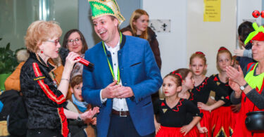Staatsministerin Michaela Kaniber bei der Eröffnung der Ausstellung im Foyer des Ministeriums gemeinsam mit (v.l.) Rosemarie Weber (Verwaltungsrat VZ Bayern e.V.), Irmgard Posch (BBV-Bezirksbäuerin Obb.), Ursula Rosner-Mehringer (Verwaltungsrat VZ Bayen e.V.) sowie Marion Zinkeler (Vorstand VZ Bayen e.V.).