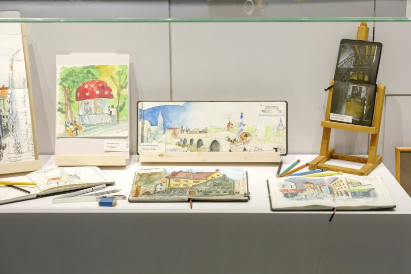Vitrinen-Ausstellung der „Urban Sketchers“ im Besucherzentrum Welterbe Regensburg – Von Donnerstag, 18. April, bis Donnerstag, 6. Juni 2024, lädt das Besucherzentrum Welterbe im Salzstadel (Weiße-Lamm-Gasse 1) zu einer Vitrinen-Ausstellung der Urban Sketchers ein.