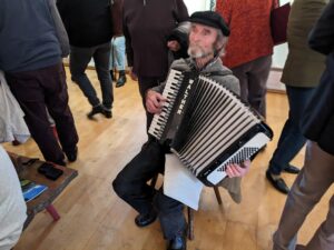 Musikalisch untermalt wurde die Eröffnung von Fritz Derwart auf der Quetschn, der zudem mit Anekdoten aus gemeinsamen Aktionen aufwartete. So erinnerte er daran, wie er gemeinsam mit Starzmann als Initiatoren einer Bürgerinitiative den Ort Oberjettenberg vor dem Bau eines Truppenübungsplatzes bewahren konnte und heute nicht Soldaten mit schwerem Kriegsgerät auf den Bauernwiesen in Oberjettenberg für den Ernstfall üben.