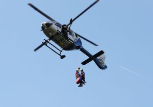 Hubschrauber bei Rettungsübung an der Mittelstation der Jennerbahn.