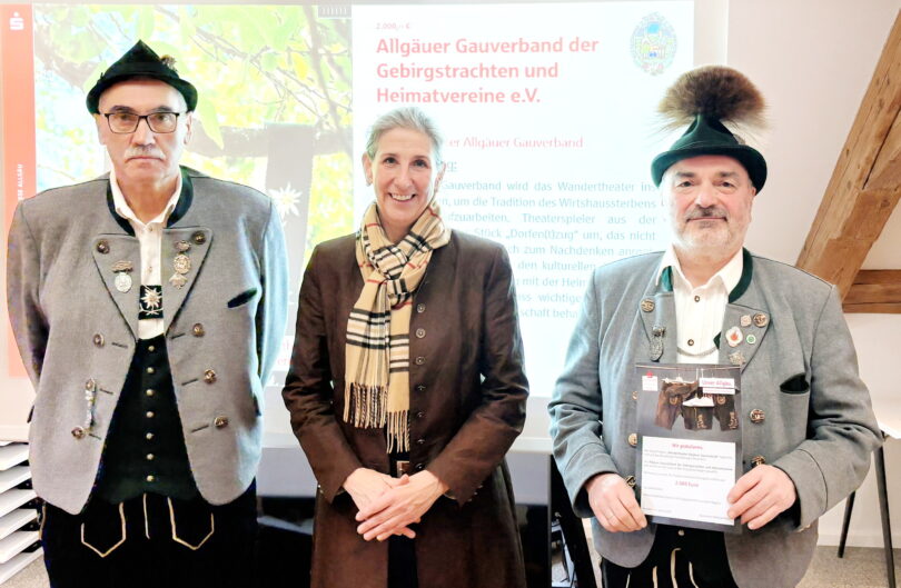 Bericht und Bild: Maria Magdalena Bitschnau, Pressewartin Allgäuer Gauverband – v.l.n.r.: Sachgebietsleiter Mundart, Brauchtum, Laienspiel im Allgäuer Gauverband Dieter Häringer, Landrätin Kreis Oberallgäu Indra Baier-Müller, Gauvorstand Allgäuer Gauverband Hubert Kolb.