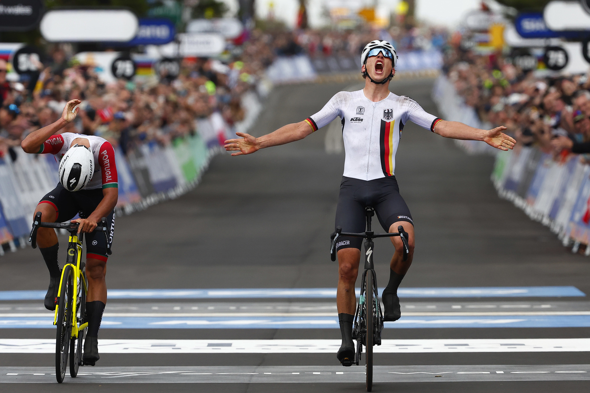 2022 UCI Road World Championships Wollongong – MenÕs Junior Road Race – Wollongong – Wollongong 135,6 km – 23/09/2022 – Emil Herzog (Germany) – Antonio Morgado (Portugal) – photo Luca Bettini/SprintCyclingAgency©2022