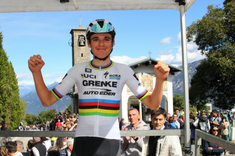 Nur wenige Tage nach seinem WM-Erfolg in Zürich triumphierte Lorenzo Finn beim italienischen U19-Rennen Olgiate Molgora-Ghisallo. Erstmals gewann damit ein GRENKE – Auto Eder Fahrer im Weltmeistertrikot mit den bekannten Regenbogenstreifen ein Radrennen.
