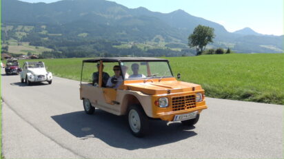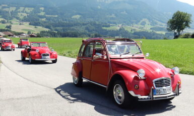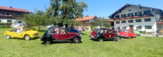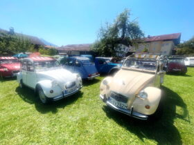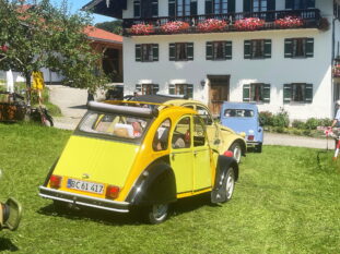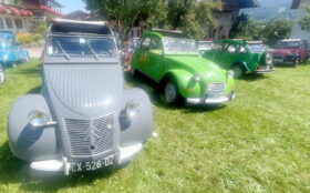 Insgesamt 110 Auto-Enten aus Bayern, Deutschland, dem Alpenraum, dem Ursprungsland Frankreich und aus weiteren Ländern kamen bei schönstem Sommerwetter auf dem Samerberg zum traditionellen Ententreffen am zweiten August-Wochenende zusammen.