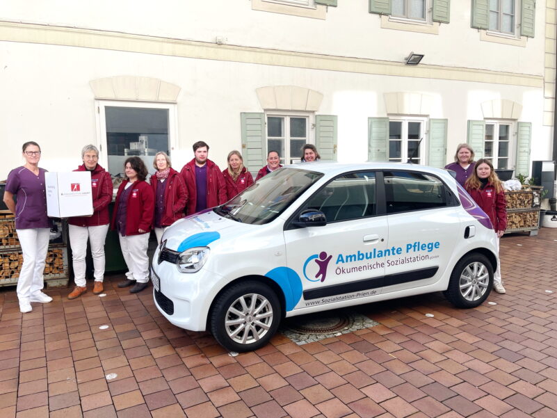 Handlungsbedarf entstand bei der Ambulanten Pflege der Ökumenischen Sozialstation in Prien aufgrund der Überalterung des Fuhrparks und erheblicher Reparaturkosten. Aus diesen Gründen entschloss sich der Verwaltungsrat, im Jahr 2022 einen Jahreswagen in weiß zu beschaffen und für 2023 ein Neufahrzeug zu bestellen.