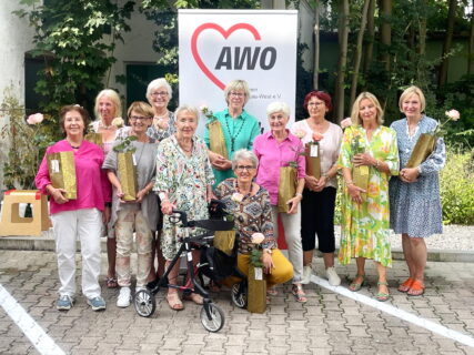 Es sind inzwischen 11 Mitarbeiterinnen, die als Team und arbeitsteilig, die anfallenden Aufgaben bewältigen. Sie werden von ihren Ehemännern und Partnern bei Reparaturen und technischen Umsetzungen, wie zum Beispiel Corona-Schutzmaßnahmen, unterstützt. Alle Mitarbeiterinnen wurden vom Vorstand des AWO-Ortsvereins für ihr hohes Engagement mit einem Geschenk geehrt. Die stellv. Vorsitzende des Ortsvereins, Elke Flender-Back, würdigte insbesondere die „tolle Zusammenarbeit im Team“. Ein besonderes Dankeschön bekamen die Mitarbeiterinnen der ersten Stunde, Hannelore Thümmel, Evelin Fischak und Monika Anner. Frau Thümmel ist für diese Feier eigens aus ihrem Wohnort bei Bad Homburg angereist.