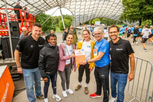 Ein ganz besonderer Höhepunkt: B2Run Charity-Partner „Menschen für Menschen“ hatte einen ganz besonderen Gast mit beim B2Run in München. Haile Gebrselassie Botschafter der Stiftung, Marathonlegende und Ausnahmeläufer schickte mit der offiziellen Startglocke einen Teil des Läuferfeldes auf die 5,7 km Runde und ging im Team der Münchner Stiftung mit auf die Strecke. Durch die Option, sich als Charity-Starter anzumelden, konnten Teilnehmende mit einem zusätzlichen Beitrag von 5 Euro wichtige Trinkwasserprojekte in Äthiopien unterstützen.