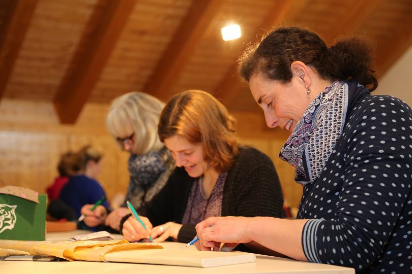 Abmessen, Zuschneiden, Stempeln, Kleben, Nähen – ein großes Ereignis wirft seine Schatten voraus und lässt die Endorfer Trachtenfrauen zu kreativer Höchstform auflaufen. Im Januar und Februar entstehen in aufwändiger Handarbeit die ersten Eintrittszeichen für das Gautrachtenfest, das im Juli 2021 in Bad Endorf stattfinden wird. Hier wird das Nützliche mit dem Angenehmen verbunden, denn nebenher lässt es sich bestens ratschen, austauschen und die Mamas der neuen Trachtenkinder können sich kennenlernen. Was sich Röckefrauenvertreterin Annemarie Hölzl und ihr Arbeitskreis genau einfallen haben lassen, wird natürlich noch nicht verraten. Interessierte Helfer(innen) sind an den Donnerstagen im Februar ab 19:30 im Vereinsheim im Gebäude des BRK in der Landinger Straße jederzeit willkommen.