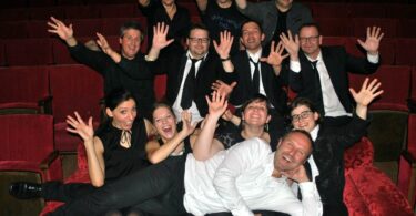 1280: Jeweils vier Mitglieder der „Capella dell’halla“ umrahmen die Sängerinnen und Sänger des Ensembles Antiphonus aus Zagreb.