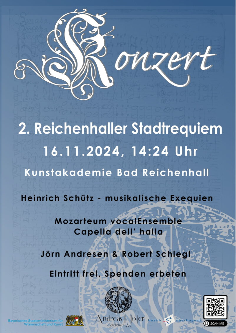 Die Andreas Hofer-Gesellschaft lädt zum 2. Bad Reichenhaller Stadtrequiem ein. Das Konzert findet am 16.11.2024 um 14.24 Uhr (kein Scherz!) im Rahmen des Bad Reichenhaller Kulturmarathons statt.