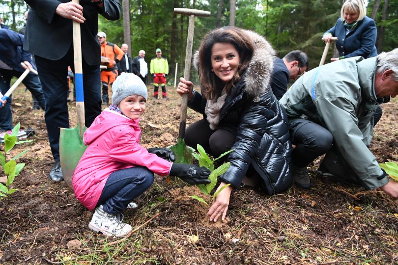 Forstministerin Michaela Kaniber pflanzte einen ersten Baum des neuen Versuchspflanzgartens, dem Arboretum, im Stadtwald von Kulmbach. Im Rahmen der Initiative Zukunftswald entsteht in Oberfranken damit das erste Klima-Arboretum in Bayern. Die zahlreichen klimastabilen Bäume sollen Aufschluss darüber geben, ob diese Arten in der Region angebaut werden können. „Es ist wichtig, auf regionaler Ebene Erfahrungen zu sammeln, wie die verschiedenen Baumarten wachsen und wie sie mit den sich ändernden Klimabedingungen zurechtkommen“, sagte die Ministerin bei der Pflanzaktion. So könnten Waldbesitzern zukünftig bestmöglich beraten werden, welche Bäume für ihre Wälder am besten geeignet sind. Neben Informationen zur Eignung verschiedener Baumarten soll das Arboretum auch als attraktives Anschauungsobjekt für Waldbesitzer und Besucher dienen.