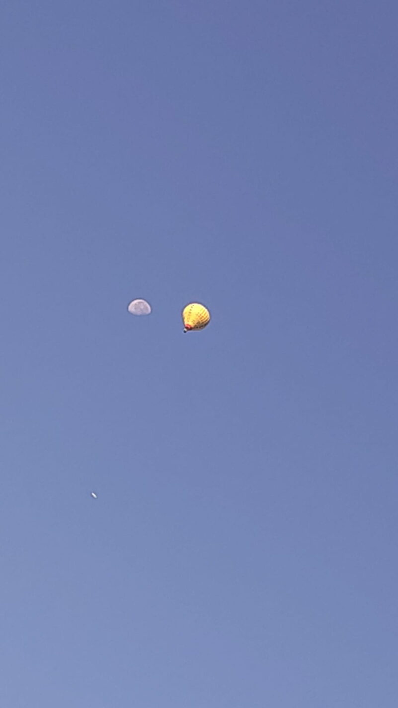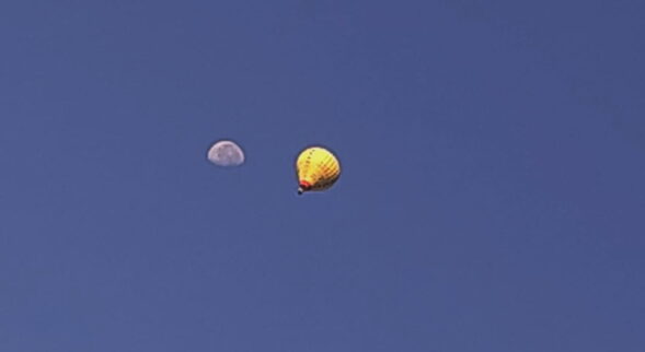 Begegnung auf hoher Höhe oder der Ballonflug zum Mond –  Zu einer seltenen Begegnung kam es an diesem Donnerstagmorgen hoch über der Marktgemeinde Prien a. Chiemee. Ein in der Früh gestarteter Heißluftballon machte sich auf in Richtung Mond, der sich noch nicht ganz von seiner nächtlichen Tour verabschiedet hatte.