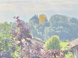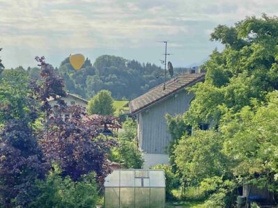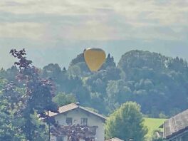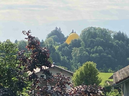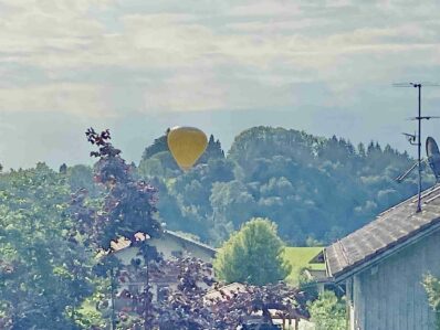 Am Sonntagmorgen landete ein weithin sichtbarer Heißluftballon nahe Prien-Bauernberg – wie unsere Bilder aus dem Nachbarort Prutdorf zeigen, setzte sich der Ballon mit seiner Mannschaft ganz gemächlich nieder.