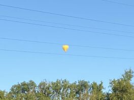 Wie diese Aufnahmen aus der Nachbarortschaft Prutdorf zeigen, schwebte der gelbe Ballon an der Kirche vorbei.