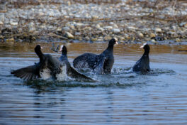 Rechtzeitig zum März habe ich heute balzende Blässhühner aufgenommen. Bei einem Bild gehen die Blässhühner in Stellung und dann legen sie los!