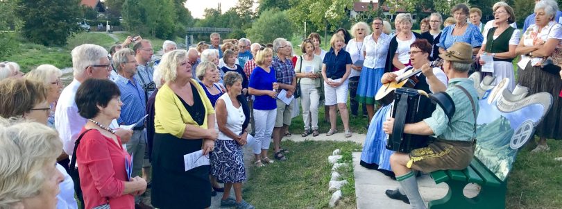 Seit Beginn der Bankerlaktion werden die besonderen Sitzgelegenheiten auch musikalisch durch ein Veranstaltungsangebot der Tourist Info Aschau in den Mittelpunkt gerückt. Gabi Reiserer an der Gitarre und Hans Wiesholzer am Akkordeon haben wieder ein neues und besonderes Programm für die musikalische Wanderung von Bankerl zu Bankerl an der Prien entlang zusammengestellt. Vom „Alperer” bis zum “Aschauer Lied” haben die über 80 Sangesfreudigen die Begeisterung an den einzelnen Bankerl-Stationen zum Ausdruck gebracht. An diesem Abend gab es unzählige Lieder und Jodler die angestimmt wurden. Gemeinsam genoss die ganze Schar das Singen und den abendlichen Spaziergang.