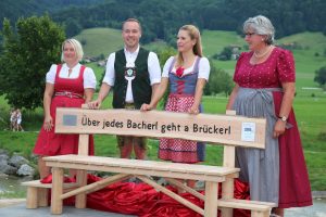 Schreinermeisterin Petra Huber, Herbert Reiter von der Tourist Info Aschau, Stefanie Hertel und die dritte Bürgermeisterin von Aschau Monika Schmid (von links)