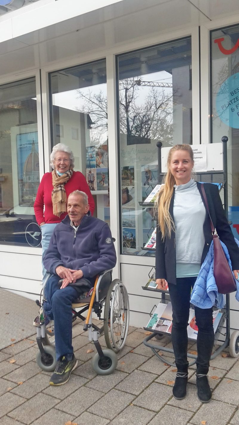 Foto: LRA BGL – Barrierefreiheitsbegehung im Reisebüro Hogger in Freilassing mit (von links) Margret Richter-Oentrich (Fa. Hogger), Jakob Bonnie und Larissa Messmer.