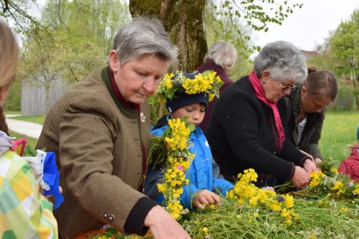 Auf der Wiese vor dem Bernöderhof wartet der Kinder-Maibaum darauf, mit bunten Bändern und Schnitzereien gemeinsam mit den Eltern und Großeltern geschmückt zu werden. Anschließend stellen die Väter mit vereinten Kräften den Baum auf. Für Frühlingsstimmung sorgen die offenen Werkstätten, in denen einfache Blumenkränze gebunden oder kleine „Maienpfeiferl“ geschnitzt werden. Ab 13:30 Uhr lädt die Musikpädagogin Annette Wachinger Kinder und Eltern zum Tanz um den Maibaum auf. Mitsingen und Tanzen ist ausdrücklich erwünscht.