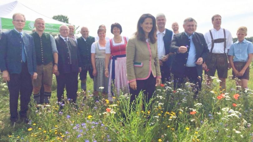 Das ist nur eines von vielen Beispielen für das Engagement der bayerischen Bäuerinnen und Bauern in Sachen Umwelt- und Naturschutz: Jeder zweite bayerische Landwirt hat sich vertraglich zu weiteren Umweltleistungen verpflichtet, knapp 40 Prozent der Flächen in Bayern werden inzwischen nach den Vorgaben der Agrarumweltprogramme bewirtschaftet. Hinzu kommen 84.000 Hektar Vertragsnaturschutzflächen und rund 230.000 Hektar ökologische Vorrangflächen, die in Bayern durch das Greening und die EU-Agrarpolitik eingerichtet wurden. Daneben laufen viele regionale Projekte und Initiativen – im Landkreis Freising fördert Landwirt Christian Meidinger produktionsintegriert seltene und gefährdete Ackerwildkräuter wie Acker-Rittersporn, Frauenspiegel und Acker-Steinsame. Vor sieben Jahren wurde erstmals Saatgut der drei Arten ausgebracht, die auf dem kalkreichen mageren Boden sehr gut gedeihen und bis heute das Ökosystem bereichern. Die Maßnahmen sind Teil mehrerer Projekte der Technischen Universität München, der Bayerischen Kulturlandstiftung und der Bioland Naturschutzberatung.