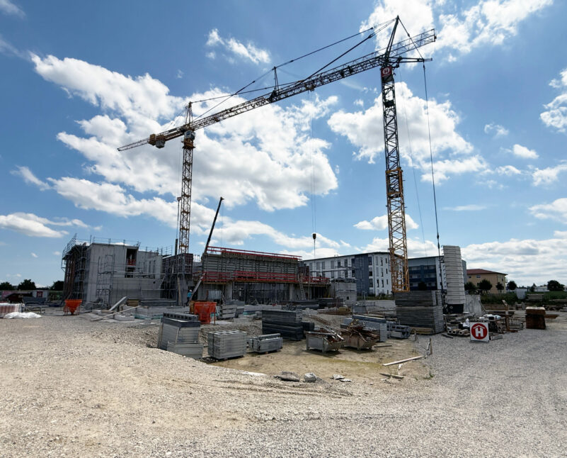 Seit dem Spatenstich im März dieses Jahres laufen die Arbeiten am neuen Amt für Ländliche Entwicklung in Mühldorf am Inn auf Hochtouren. Sämtliche Erdarbeiten sind bereits abgeschlossen und auch die beiden Treppenhäuser aus Stahlbeton sind bereits errichtet.