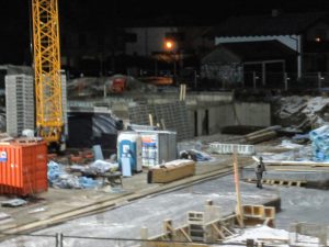 Die Baumaßnahmen im Baugebiet Prien-Birkenweg schreiten zügig voran. Am Dienstag, 7.Dezember wurde die Bodenplatte betoniert. Für die Betonnage, die bereits um 6 Uhr früh begann, wurden ca. 580 qm Beton benötigt. Die Arbeiten zur Nachbehandlung einschließlich Glättarbeiten liefen die ganze Nacht. Eine entsprechende Ausnahmegenehmigung wurde von der Gemeinde erteilt.