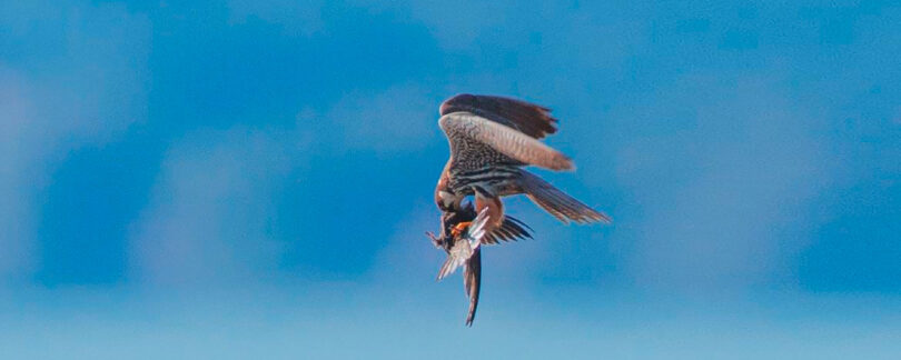 Bei herbstlich kalten Augusttagen war ich wieder am Beobachtungsturm in der Hirschauer Buch, den trotz des kühlen Wetters zahlreiche Ausflügler besuchten. Mehrere Eisvögel, die wiederholt erfolgreich fischten, begeisterten die Besucher und Fotografen. Nach mehreren ereignislosen Stunden überquerte mehrmals ein allerdings erfolglos jagender Fischadler die Bucht. Ein Baumfalke jagte zunächst auch vergeblich Schwalben. Verwundert beobachte ich einige Mauersegler, die ich schon auf den Weg in ihre Winterquartiere vermutete. Der bisher erfolglose Baumfalke erbeutete dann mit unglaublicher Geschwindigkeit erfolgreich einen Mauersegler. Mit der Beute in den Fängen, die er bereits während des Fluges kröpfte, verschwand er in Turmnähe in den hohen Bäumen. Zilpzalps sucht unermüdlich Blattläuse im dichten Schilf vor dem Turm. Am anderen Ufer der Bucht ästen Hirschkühe mit ihren Kälbern. Ein großer Schwarm Kormorane kreiste kurz vor dem Turm, während ein junger Haubentaucher vergeblich versuchte, einen großen Flussbarsch zu verschlingen.