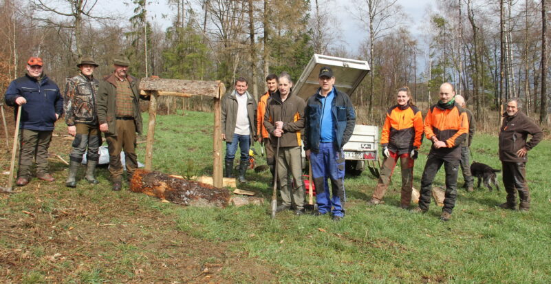 Bericht und Bilder: Sabine Neugebauer – 1. Die Hasselbacher Jagdgenossenschaft, die Jagdpächter und Hessenforst ziehen gemeinsam an einem Strang und pflanzen Bäume. 2. Bei Hasselbach werden am Freitag die ersten von etwa 140 Bäumen aus der Spende der Jagdgenossenschaft gepflanzt.