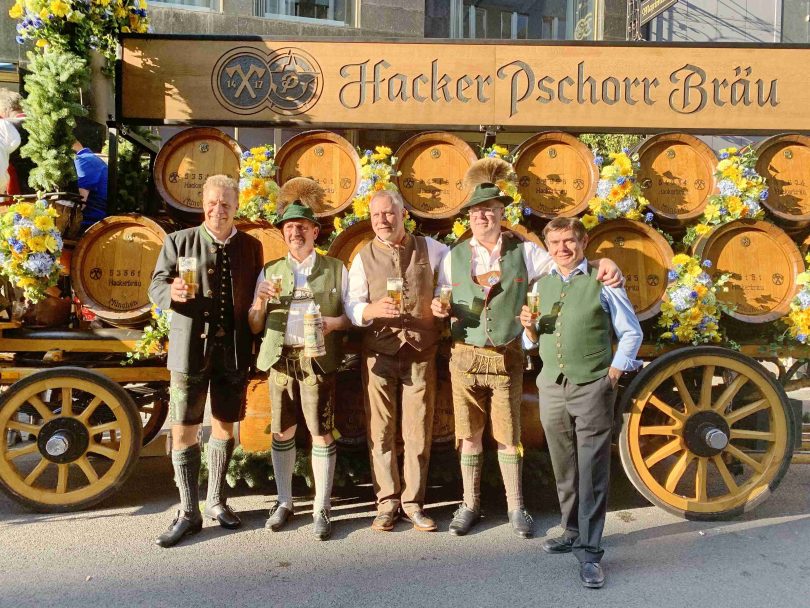 Der gastronomische-bierbrauerische Einfluss Bayerns in der Bundeshauptstadt Berlin ist wieder größer geworden. Nach monatelangen Umbauarbeiten und Corona-Lockdown wurde das „Maximilians“ in der Friedrichstraße – und damit im Herzen von Berlin-Mitte – wiedereröffnet. Neu sind nicht nur die traditionell-moderne Ausstattung in den verschiedenen Räumlichkeiten, neu ist auch, dass es fortan und ohne Ruhetag aus dem Holzfass frisch gezapftes Original Hacker-Pschorr Edelhell gibt. „Das ist auch für uns eine Rarität, denn Edelhell aus dem Holzfass gibt es eigentlich nur bei uns in Bayern, aber die so lange und gute Tradition und Zusammenarbeit mit Maximilians in Berlin haben uns überzeugt“ – so Andreas Steinfatt als Chef der Paulaner Brauerei Gruppe zu Gastronom Michael Gorski und Maximilians-Geschäftsführer Frank Sotola. Zu den ersten Probanten und Gratulanten gehörten unter anderem Helmut Amberger als Vorsitzender vom Verein der Bayern in Berlin und Entenwirt Peter Schrödl vom Samerberg, der seit 10 Jahren auf der Grünen Woche Berliner Erfahrungen gesammelt hat. Die musikalische Gestaltung der Wiedereröffnungsfeier übernahmen die Mitglieder der Tegernseer Tanzlmusi. Mit Irschenberger Rössern wurde sogar vierspännig zur Wiedereröffnung vorgefahren.