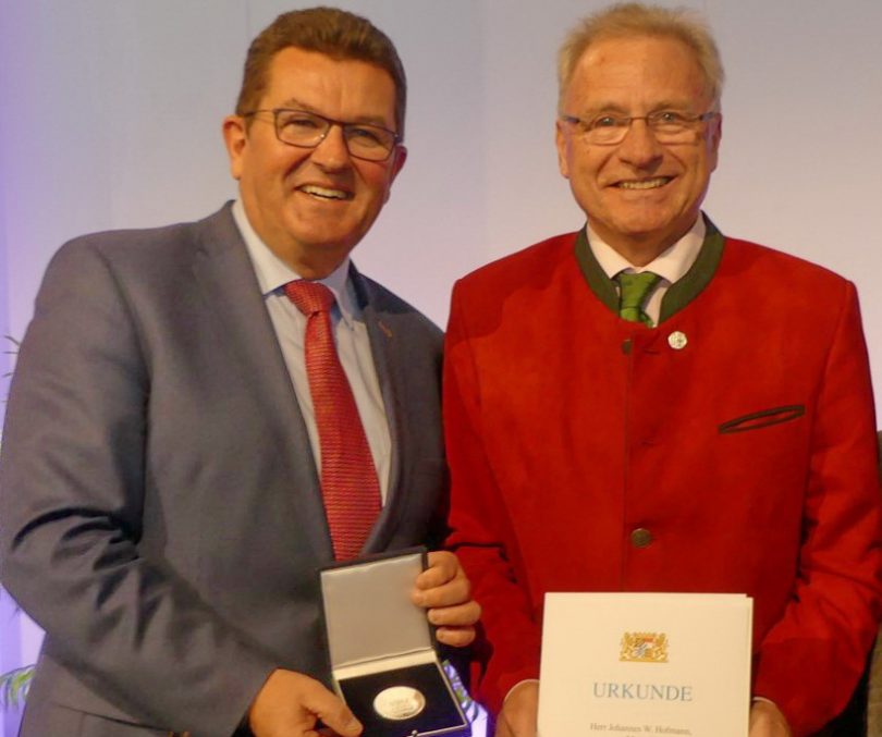 Johannes W. Hofmann, Vorsitzender der Kreisstelle Berchtesgadener Land des DEHOGA Bayern, hat im Rahmen der Reise- und Freizeitmesse f.re.e aus den Händen von Wirtschafts- und Tourismusstaatssekretär Franz Josef Pschierer die „Medaille für besondere Verdienste um die bayerische Gastlichkeit“ erhalten. Die Ehrung zeichnet ehrenamtliche Unterstützer aus, deren Kompetenz, Engagement, Freundlichkeit und Leistung dem Tourismusland Bayern sein national und international anerkanntes Gesicht geben.