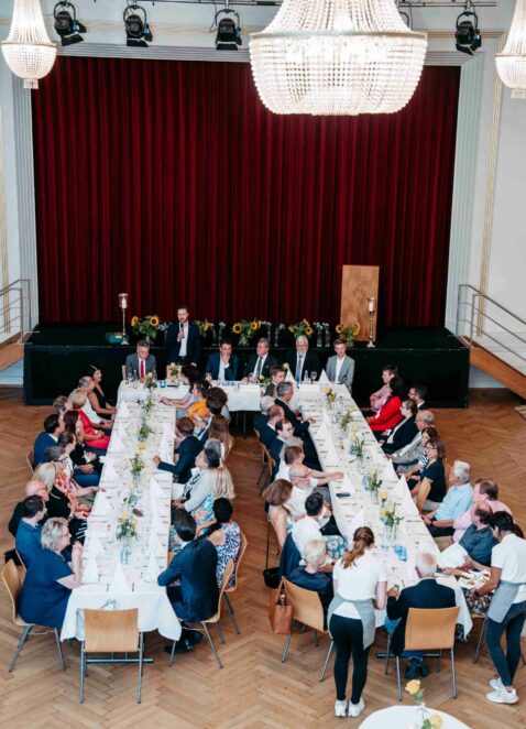 Der Juristenempfang bot eine Plattform für einen intensiven Dialog zwischen Expertinnen und Experten aus der Justiz und dem Staatsministerium für Justiz. Staatsminister Georg Eisenreich betonte die Bedeutung von künstlicher Intelligenz für die Justiz und betonte, dass diese Technologie das Potenzial habe, die Effizienz und Qualität der Rechtsprechung zu verbessern. Gleichzeitig unterstrich er jedoch auch die Notwendigkeit, den Einsatz von künstlicher Intelligenz in der Justiz sorgfältig zu prüfen und ethische Aspekte zu berücksichtigen. „Eine hybride Intelligenz – also das Zusammenspiel von künstlicher und menschlicher Intelligenz wäre eine perfekte Lösung“, so der Staatsminister.