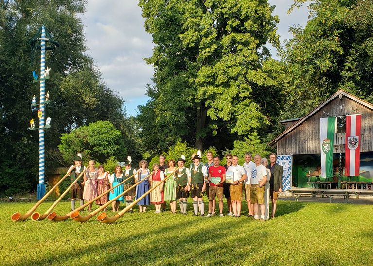 Die Europäische Fußballmeisterschaft nahm Gery Richter nun zum Anlass, auch in Berlin, wo es seit 148 Jahren einen bayrischen Brauchtumsverein gibt, die bayrisch-steirische Freundschaft zu vertiefen. Dazu haben die Berliner Bayern ihren Bayernplatz nebst Almhütte auf Vordermann gebracht und extra ein Public-Viewing eingerichtet. Somit konnten die Gäste sowohl in den Zelten als auch in der Almhütte das spannende EM-Spiel verfolgen. Zur Begrüßung der Gäste spielte das Steirer-Duo des Vereins, Moni und Felix, stimmungsvolle steirische Harmonika-Hits. Angeblasen wurde das Fußballspiel der Österreicher gegen die Oranjes vom Alphorn-Ensemble, Alphorn-Bavaria-Berlin.