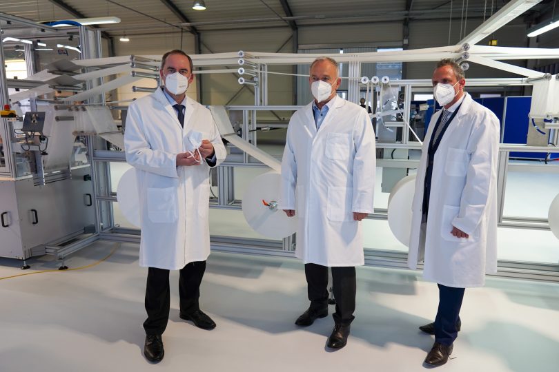 Die niederbayerische Zettl Group aus Weng im Landkreis Landshut kann ab sofort FFP2-Atemschutzmasken herstellen. Die notwendige Zertifizierung wurde im Beisein von Wirtschaftsminister Hubert Aiwanger und Verbraucherschutzminister Thorsten Glauber überreicht. Wirtschaftsminister Hubert Aiwanger hat den Zusammenschluss mehrerer bayerischer Unternehmen zum so genannten Maskenverbund Bayern und die Aufnahme einer bayerischen Maskenproduktion von Beginn der Coronakrise an unterstützt: „Das Ziel einer eigenen bayerischen Produktion von medizinischer Schutzausrüstung ist jetzt Realität geworden. Wir erleben heute einen wegweisenden Schritt in Richtung bayerischer Selbstversorgung mit der Inbetriebnahme einer vollautomatisierten Fertigungsanlage für zertifizierte FFP2-Masken hier in Weng. Als Wirtschaftsminister freue ich mich sehr, dass wir im Freistaat Unternehmen wie Zettl haben, die in Krisenzeiten bereit sind, in neue Geschäftsmodelle zu investieren.”