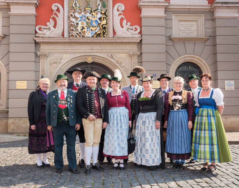 Foto/s: Deutscher Trachtenverband – Eindrücke vom Besuch des Bayerischen Trachtenverbandes beim Deutschen Trachtenfest in Gotha – Gruppenbild mit Vertretern des Vorstands vom Deutschen Trachtenverband unter der Leitung von Knut Kreuch