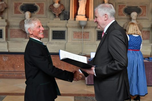 Am heutigen Mittwoch, 12. Juli konnte das Bayernbund-Mitglied Dr. Helmut Wittmann aus Seeon in der Bayerischen Staatskanzlei den Bayerischen Verdienstorden aus den Händen des Bayereischen Ministerpräsidenten Horst Seehofer in Empfang nehmen – für ein aussergewöhnliches Lebenswerk.