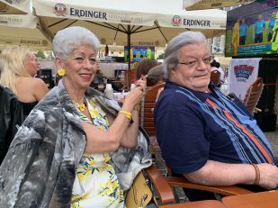 Samerberg trifft Berlin beim Erdinger zum EM-Auftaktspiel der deutschen Nationalmannschaft  –  Gerade rechtzeitig zum EM-Auftaktspiel der deutschen Nationalmannschaft gegen Frankreich waren Toni Hötzelsperger (Presse Chiemsee, Samerberg und Oberbayern) und Peter Schrödl (Entenwirt vom Samerberg) in Berlin eingetroffen. Auf ihrem Programm stehen Vorbesprechungen zur Internationale Grüne Woche und der Landesgartenschau in Beelitz im nächsten Jahr. Die sinkenden Fallzahlen der Corona-Pandemie lassen hoffen, dass in 2022 derartige Großveranstaltungen wieder mit Publikum  stattfinden.