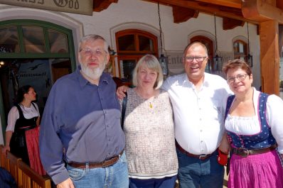Foto/s: Hötzelsperger – Berlinerisch-Bayerisches Wirtetreffen am Samerberg, von links: Franz und Brigitte Theys von der Kartoffelkiste sowie Peter und Kathi Schrödl vom Entenwirt bzw. Peter Schrödl, Brigitte und Franz Theys und Kathi Schrödl
