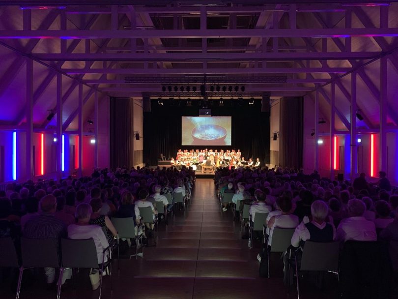 Altötting. Am Samstag verwandelte sich das hochmoderne Altöttinger Kultur+Kongress Forum in eine Kirche: Hans Berger war in diesem Jahr – zusätzlich zum Weihnachtskonzert – nach Altötting gekommen, um sein Werk „Bayerisch durchs Kirchenjahr“ aufzuführen. Er kam mit seinem „Großen Ensemble“, seinem Montini-Chor sowie einer Abordnung des Theaterchores Halsbach, mit dem Hans Berger schon zahlreiche Projekte verwirklichte.